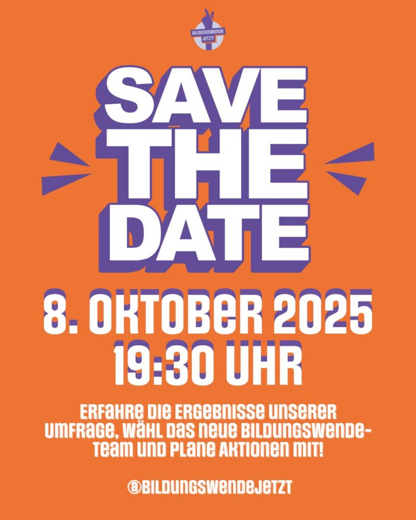 - Präsentation der Ergebnisse unserer Umfrage „Deine Ideen, deine Stimme – Bildungswende gemeinsam gestalten“
